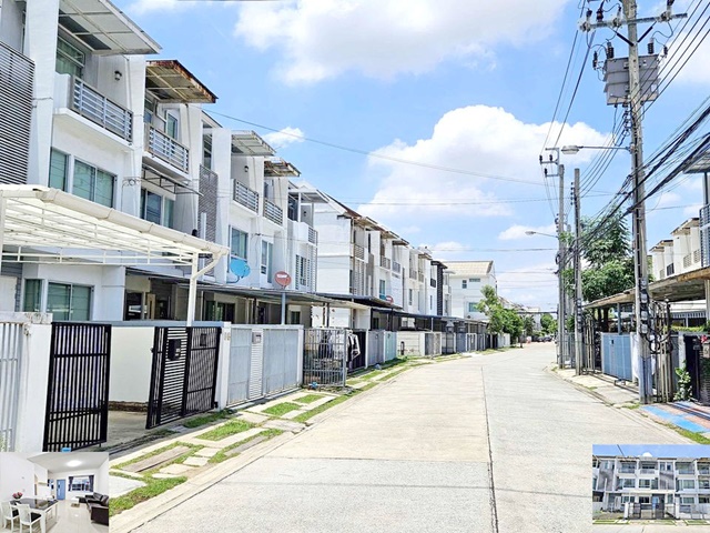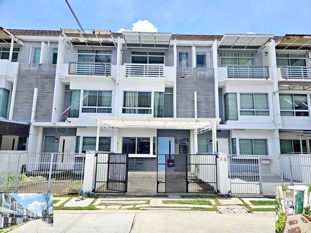 Krungthep Kreetha 3-9 Rama 9 Ramkhamhaeng for sale-rent 3-story townhome MRT Sri Burapha 1km. 20sq.wa. 155sq.m. 31,998B-M 4.6 million baht. Love pet good atmosphere 3bed 3bath 3parking 4A/C landscaping around the house. Si Rat Expressway The Mall Bangkapi.