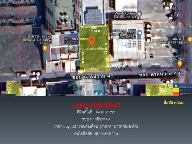 เนื้อที่ 104 ตารางวา หน้ากว้าง 16 เมตร ลึก 26 เมตร