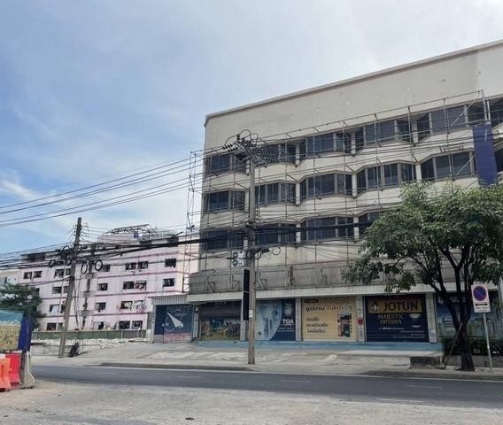 มีพื้นที่จอดรถด้านหน้าและ มีอาคารโกดังเก็บสินค้าอยู่ด้านหลังของตึก