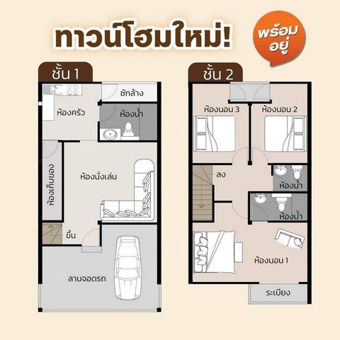 ทาวน์โฮม 2 ชั้น พร้อมอยู่ น้ำไม่ท่วมล้าน%