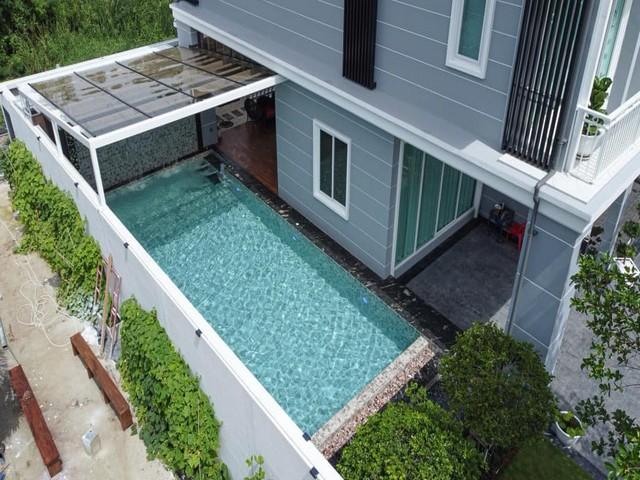มีสระว่ายน้ำ ขนาด 5 x 10 m ประตู-บันได ไม้สักทั้งหลัง วัสดุเกรด A ทั้งหมด