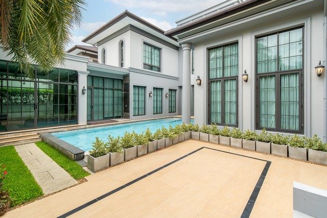 – สระว่ายน้ำกลางบ้าน: มองเห็นได้จากทุกจุด พร้อมสวนสไตล์อังกฤษ เหมาะสำหรับจัด Pool party