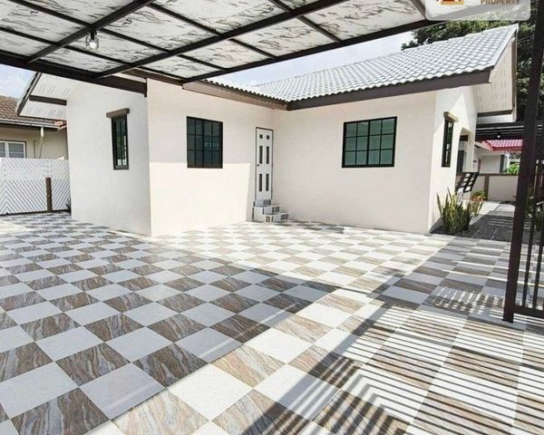 – ปูกระเบื้องหน้าบ้านและโรงจอดรถเต็มพื้นที่