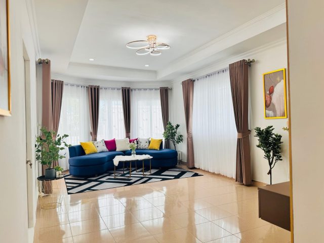 sาคา 2.89 ลบ. ฟังก์บ้ชั่นลงตัว ของแถมเพียบ มีพื้นที่ข้างบ้านเหลือๆ มีสวนหย่อมหน้าบ้านโปร่งสบาย