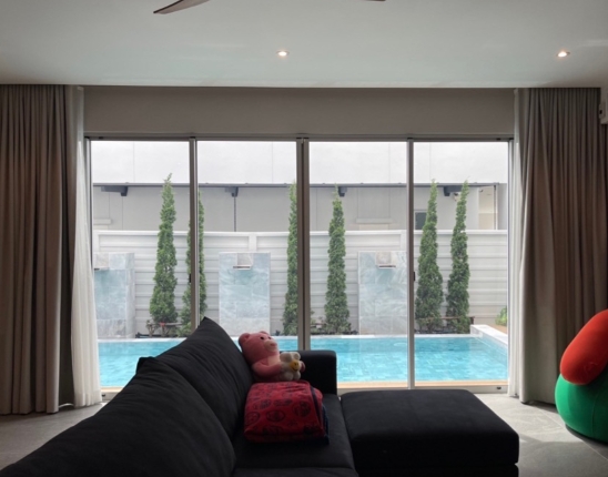– ติดฟิลม์กันร้อน และผ้าม่านยี่ห้อ VC ทั้งหลัง – Home Automation ทั้งหลัง (digital doorlock, สวิทช์ไฟ, ม่านไฟฟ้า, สัญญาณกันขโมย)