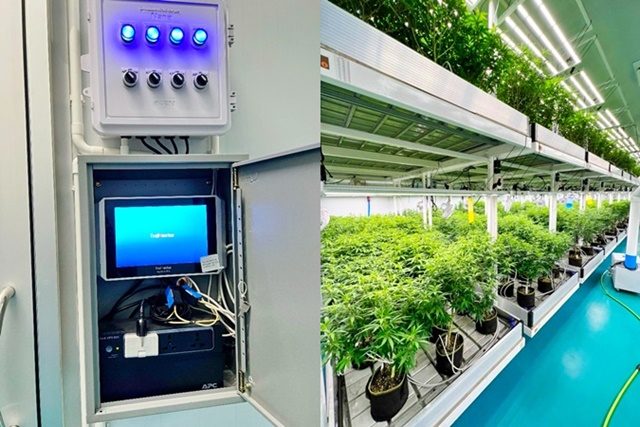 – ห้องปลูกกัญชาแนวตั้ง (ชั้นวาง) มี 3 ห้อง แต่ละห้องมีต้นกัญชาประมาณ 680 ต้น ผลิตได้ 45-60 กก. / รอบ / ห้อง