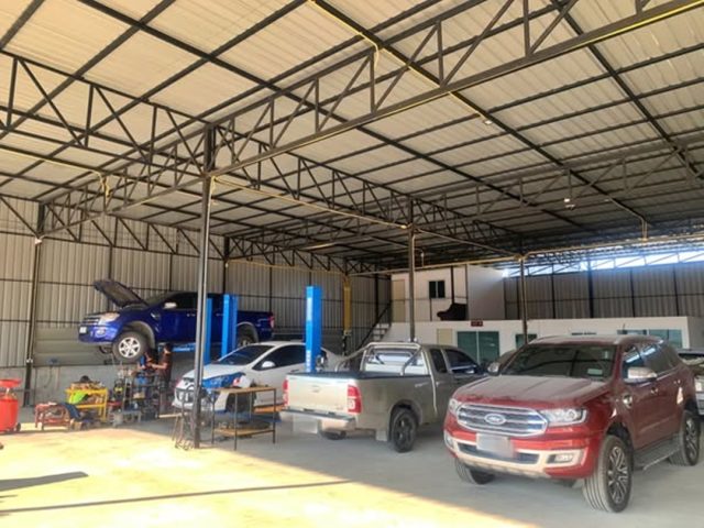 เซ้งอู่ซ่อมรถ พร้อมอุปกรณ์+โครงสร้างทั้งหมด บางพลี สมุทรปราการ จอดรถได้ 30 คัน พื้นที่ด้านหลังครึ่งไร่