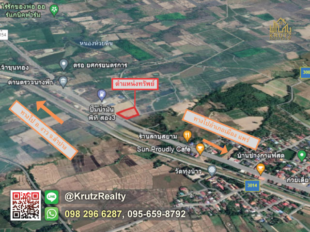 แนะนำ ที่ดินเปล่าติดถนนใหญ่สายหลัก 4 เลน แพร่-ลำปาง พื้นที่ปรับหน้าดินเรียบร้อย ติดกับปั๊มน้ำมัน PT และอยู่ข้างๆ ด่านตรวจนางฟ้า อ.สอง พร้อมทั้งมีทางเข้าออกกว้างขวาง บนพื้นที่ 4 ไร่ 2 งาน 27.6 ตารางวา ตั้งอยู่ที่ ต.ทุ่งน้าว อ.สอง จ.แพร่ ในราคาเพียงไร่ละ 1.5 ล้านบาท