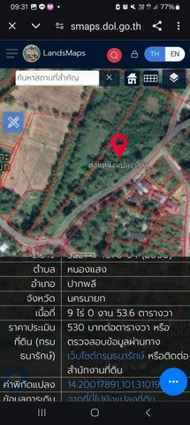 ขายด่วน!! ที่ดินสวย 9-0-53 ไร่ นครนายก ทางลัดไปเขาใหญ่ 15 นาที น้ำไม่เคยท่วม แบ่งแปลงได้
