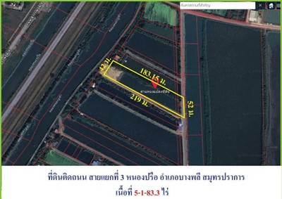 ขายถูกที่ดินถนนศรีวารีน้อย-สายที่2 ข้ามสุวรรณภูมิ (เนื้อที่ 5-1-83 ไร่ รวมเป็นเงิน 32,745,000 บาท) ศรีวารีน้อย ต.หนองปรือ บางพลี สมุทรปราการ