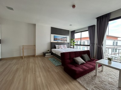 ห้องสตูดิโอหน้าต่างเปิดโล่งเห็นวิวสระว่ายน้ำ แสงสว่างอากาศถ่ายเทดีมาก ขนเสื้อผ้าเข้าอยู่ได้ทันที