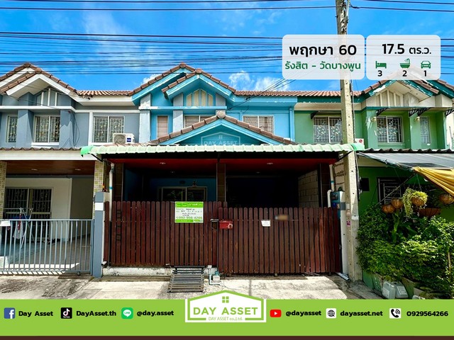 ขายทาวน์เฮาส์ 2 ชั้น หมู่บ้าน พฤกษา 60 (รังสิต-วัดบางพูน) หน้าบ้านไม่ชนหลังอื่น เนื้อที่ 17.5 ตร.ว. ขายเพียง 1,850,000 ล้านบาท