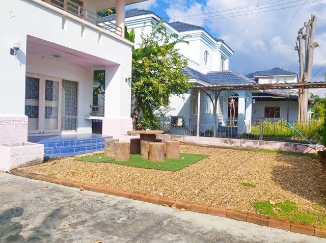 Ozone Market 1 km. 2-storey detached house large house Assumption Rayong Sch 1.8km. 240 sq.m. 80 sq.wa.fully furnished built-in kitchen 3 bed 3 bath close to the city quiet very safe For rent 13,999 B-M is a shopping area convenient for finding food Rayong Technology Business Administration R-TEC 6.7 km.