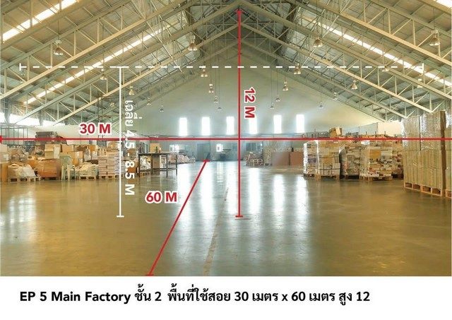 อาคารโรงงาน มีตัวโรงงาน โกดังเก็บสินค้า โรงอาหารสำหรับพนักงาน ที่จอดรถ