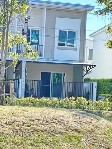 Srinakarin-Theparak Talad Im Charoen Theparak 1.1 km. 2-storey townhouse corner house next to a garden shady cool 4 bed 3 bath 24 sq.w.192 sq.m. Bangna Hospital 5 1.4 km. 3 a/c For rent 12,999 B-Mfitness swimming pool easy to find food convenient transportation MRT Sri Dan 6.1 km.