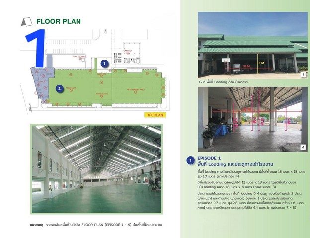 อาคารโรงงาน : ตัวโรงงาน โกดังเก็บสินค้า โรงอาหารสำหรับพนักงาน ที่จอดรถ