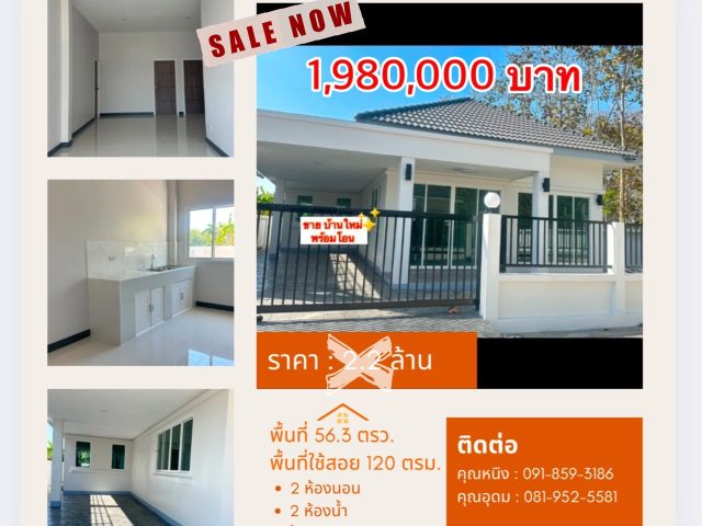บ้านสร้างใหม่พร้อมสาธารณูปโภค น้ำ,ไฟครบ พร้อมเข้าอยู่