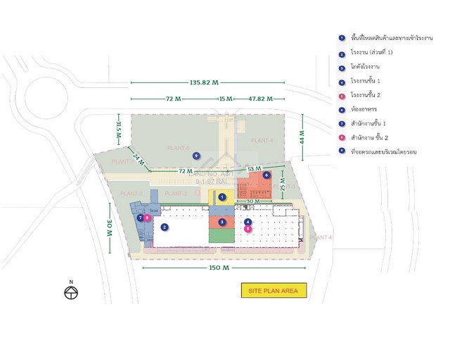 อาคารโรงงาน : ตัวโรงงาน โกดังเก็บสินค้า โรงอาหารสำหรับพนักงาน ที่จอดรถ