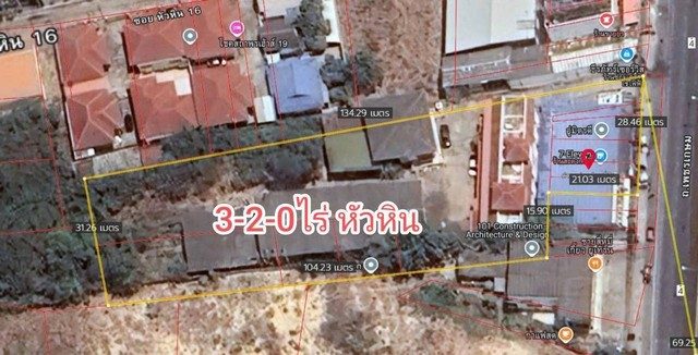 ขายที่ดินพร้อมสิ่งปลูกสร้างหัวหิน 3-2-0ไร่ ติดถนนเพชรเกษม ใกล้วังไกลกังวล