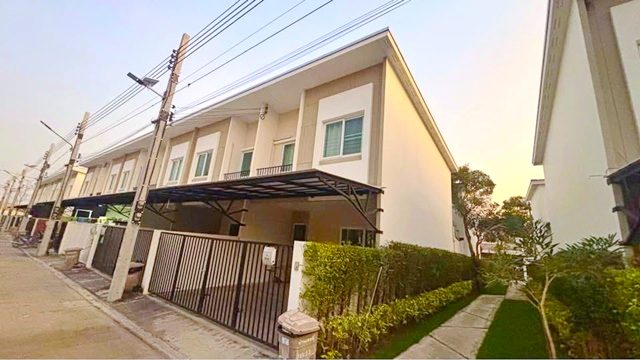 Srinakarin shady atmosphere 4bed Global House Theparak HuaThanon Market 1.4km. 2-storey corner townhouse 3bath 26sq.wa. 210sq.m. Suvarnabhumi Singapore International School 2.2 km. New house with garden fitness swimming pool 13,999 B-M convenient transportation easy to find food. Bless City