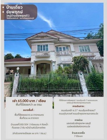 ขายบ้านเดี่ยว 2 ชั้น หมู่บ้านชัยพฤกษ์ 1 ซอยคุ้มเกล้า 7 ถนนสุวินทวงศ์