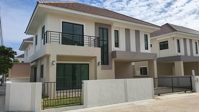 corner house on the road 2-storey detached house 4 bed MRT KhlongBangPhai 4.8km. BangYai Market 5.2 km. 3 bath Bang Yai Hospital 8 km. 242 sq.m. 62 sq.wa. with furniture 24,998 B-M Central Westgate 7.5 km. shopping area convenient transportation