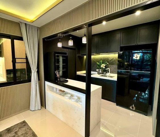 >ห้องครัวมี 2 แบบ **แบบครัวไทย พร้อมชุดดูดควันเตาแก๊ส และอุปกรณ์ ไมโครเวฟ,ตู้เย็น และBuilt in