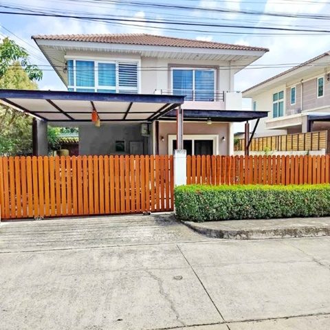 Thai-Singapore Inter School 1.6km. MRT SiDan 2km. Makro Srinakarin 1.8 km. BangKaeo BangPhli 2-storey detached house 3 bed 3 bath quiet atmosphere 63sq.wa., 253sq.m. fully furnished 24,998 B-M. multiple entrances and exits Srinakarin Road.
