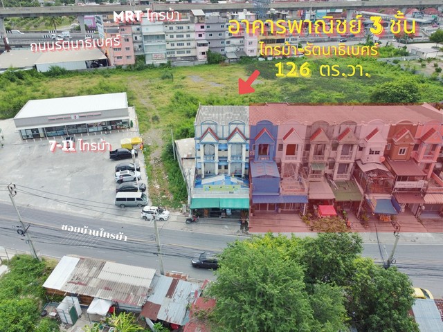 อาคารพาณิชย์ 2 คูหา ไทรม้า รัตนาธิเบศร์ 126 ตร.วา. หลังมุม ต้นซอยไทรม้า ติด 7-11 ใกล้สถานีรถไฟฟ้า MRT ทำเลดี ติดถนน เหมาะค้าขาย