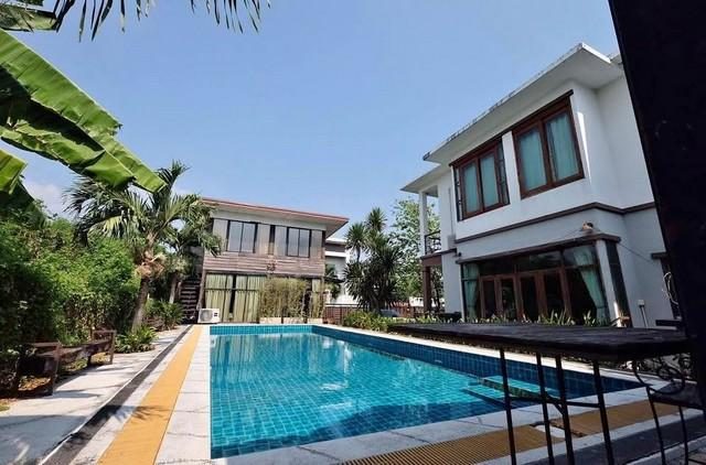 เนื้อที่ 200 ตารางวา จำนวน 2 ชั้น 7 ห้องนอน 8 ห้องน้ำ 2 ห้องแม่บ้าน มีสระว่ายน้ำ จอดรถได้ 6-8 คัน