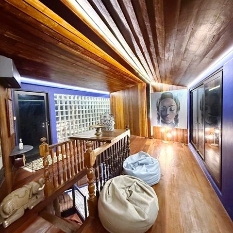– ตกแต่งพร้อม: ไม้สวย ผนังโชว์ลายไทย แสงไฟบรรยากาศอบอุ่น แถมกระจกบล็อกสวยงาม เพิ่มความโมเดิร์น