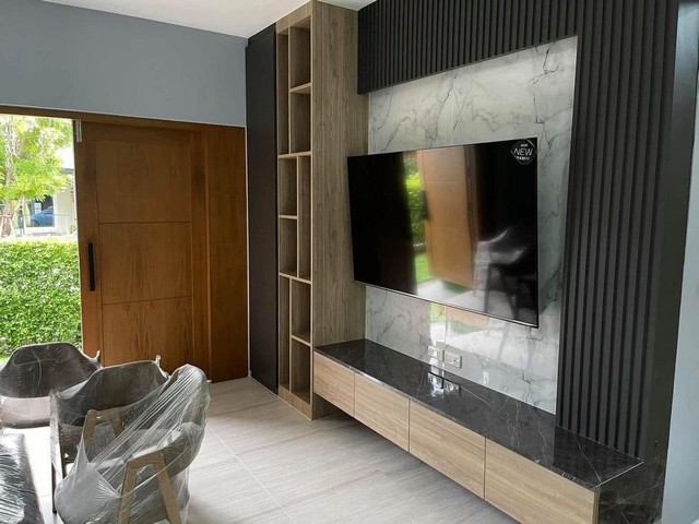 บิ้วอินทั้งหลัง น้ำตก หญ้าเทียม โต๊ะม้าหิน ประตูรั้วไฟฟ้า ลงเข็มรอบบ้าน