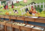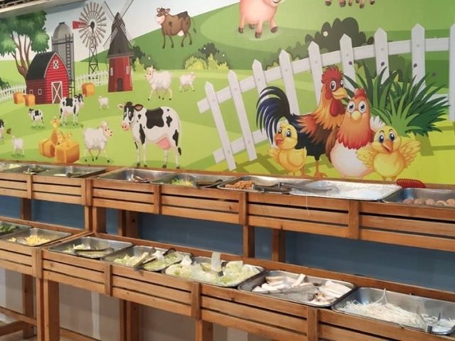 – โต๊ะเตรียมสแตนเลส 1 ตัว , โต๊ะสแตนเลสวางถาดอาหาร 3 ตัว , วางบาร์น้ำจิ้ม และตู้น้ำผลไม้ 2 ตัว