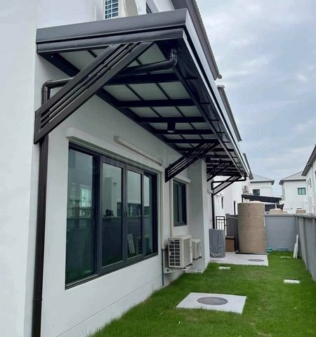 – หลังคาหลังบ้านโครงเหล็กอย่างดีพร้อมรางน้ำ