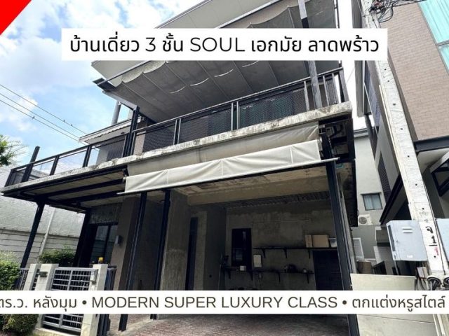 ขายบ้านหรู 3 ชั้น หลังมุม โซล เอกมัย ลาดพร้าว Soul Ekkamai Ladprao, modern loft style ใกล้ Town in Town, รร.บดินทร์เดชา
