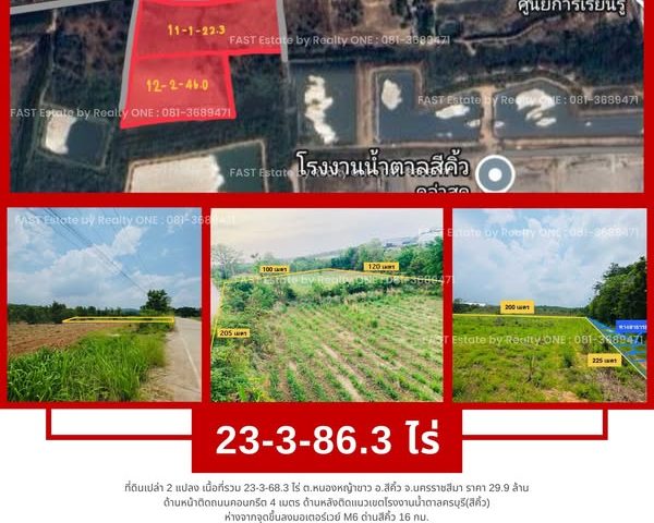 ขายด่วน ที่ดินเปล่า 2 แปลง โฉนดครุฑแดง ด้านติดทางสาธารณะประโยชน์ 3 ด้าน ด้านหลังติดโรงงานน้ำตาลครบุรี สาขาสีคิ้ว จ.นครราชสีมา ไฟฟ้า-น้ำประปาหน้าที่ดิน