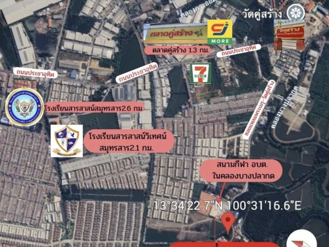 ขายด่วนที่ดินทำเลทอง ตรงข้ามวัดคู่สร้าง ราคาถูกกว่าตลาด 45% ซอยแหลมพระเมรุ-วัดคู่สร้าง ใกล้สนามกีฬา อบต.ในคลองบางปลากด