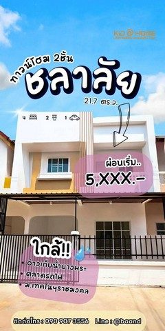KDH0052 ขายทาวน์โฮม ชลาลัย​ บางพระ​ ขนาด 21.7 ตร.วา ทาวน์โฮม 4 ห้องนอน