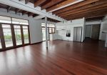 พื้นที่รับแขกและรับประทานอาหารแบบเปิดโล่งปูด้วยพื้นไม้จริงทั่วทั้งหลัง
