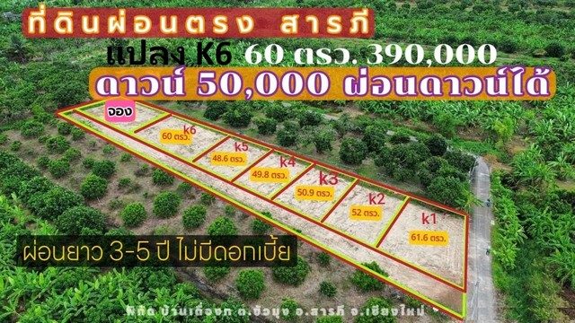 – ราคาเงินผ่อน เฉพาะ แปลง K6 พื้นที่ 60 ตรว. ราคา 390,000 บาท