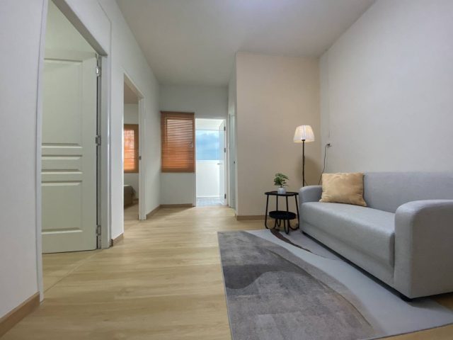 มี 2 ห้องนอน 1 ห้องน้ำ 1 ห้องครัว 1 ห้องนั่งเล่น