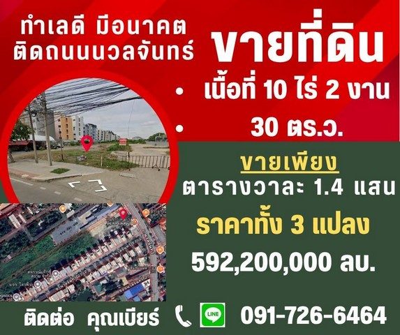 แสดงความคิดเห็น เกี่ยวกับ " ขายที่ดินทำเลดีติดถนนนวลจันทร์ ที่ดินเนื้อที่ 10 ไร่ 2งาน 30 ตร.วา อำเภอบึงกุ่ม กทม. "