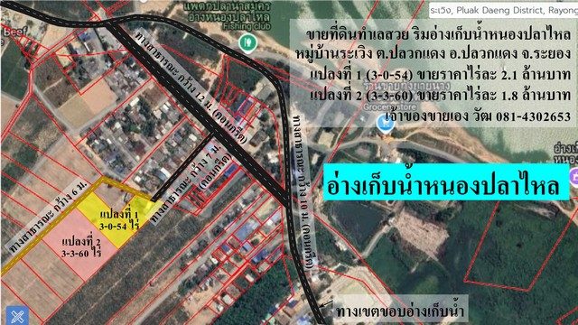 ขายที่ดินริมอ่างเก็บน้ำหนองปลาไหล หมู่บ้านระเวิง ตำบลปลวกแดง อำเภอปลวกแดง จังหวัดระยอง