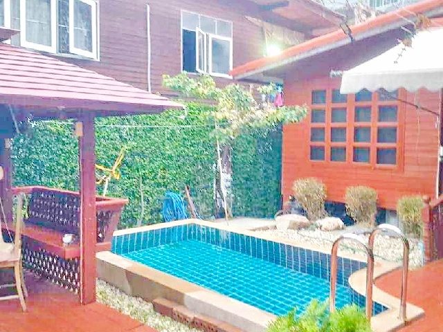 Ngamwongwan 10-18 MRT KhaeRai 2.2km. For rent pool villa vacation home 36 sq.wa.145 sq.m. shady atmosphere Ngamwongwan area Dhurakij Pundit University 2.3 km.2 bed 1 bath with furniture swimming pool fitness 29,999 B-M community area shopping The Mall Ngamwongwan 700 m.convenient transportation Ngamwongwan Road. Prachachuen