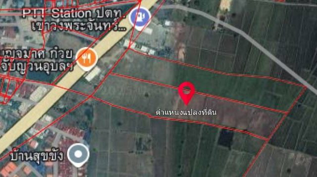 – ที่ดินด้านหลังอาคาร 21ไร่ ด้านหน้าติดอาคาร ติดถนน จำนวน 2 งาน 48 ตารางวา)