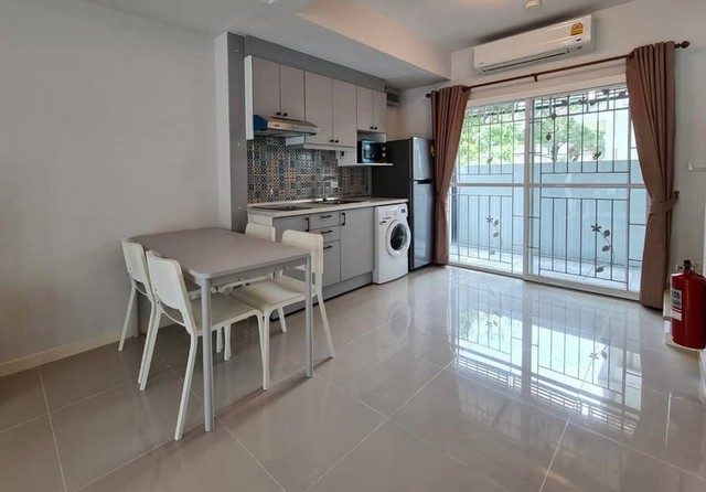 ครัว built-in, ตู้เย็น 2 ประตู, เครื่องซักผ้า โต๊ะกินข้าว, microwave ,มีมุ้งลวดทั้งหลัง
