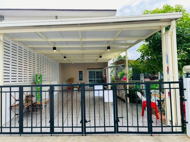 ทาวน์โฮม 2 ชั้น แปลแรกต้นโครงการ ติดสวนหย่อมหมู่บ้าน บ้านสภาพสวยน่าอยู่ โครงการเงียบสงบร่มรื่น ต่อเติมครัวและโรงจอดรถด้านหน้า