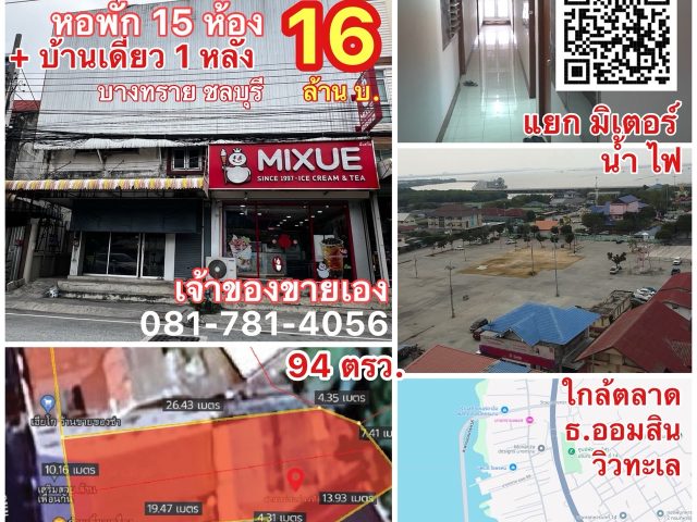 ขายหอพัก 3 ชั้น และบ้าน 1 หลัง ทำเลดี ตำบลบางทราย เมืองชลบุรี