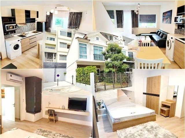 Indy Ramkamheng2 Mega Bangna for rent 2-story townhome corner unit 20sq.wa. 100sq.m. 29,499B-M fully furnished private 2bed 3bath 2parking 3A/C has a garden MRT SriIam good location.