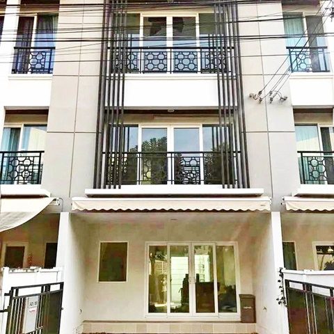 Rama 9 APL Hua Mak home office for rent 3 floors garden view front of house north 18sq.wa. 150.sq.m. 22,999B-M loves pet can register a company 3bed 3bath 1parking 3A/C Thanya Shopping Park convenient travel.